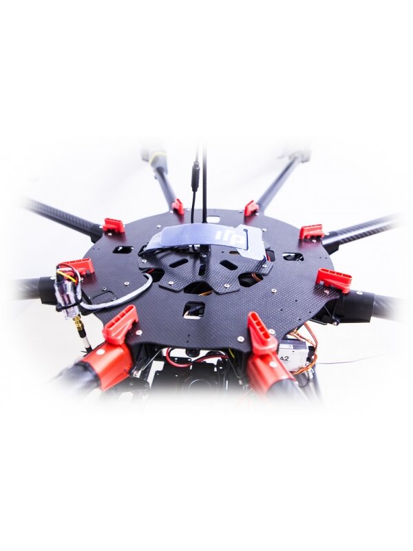 Большой полётный вес, порядка 11 кг и габариты позволяют размещать на системе профессиональную фото/видео аппаратуру.